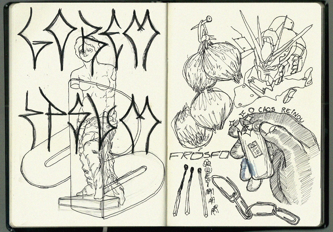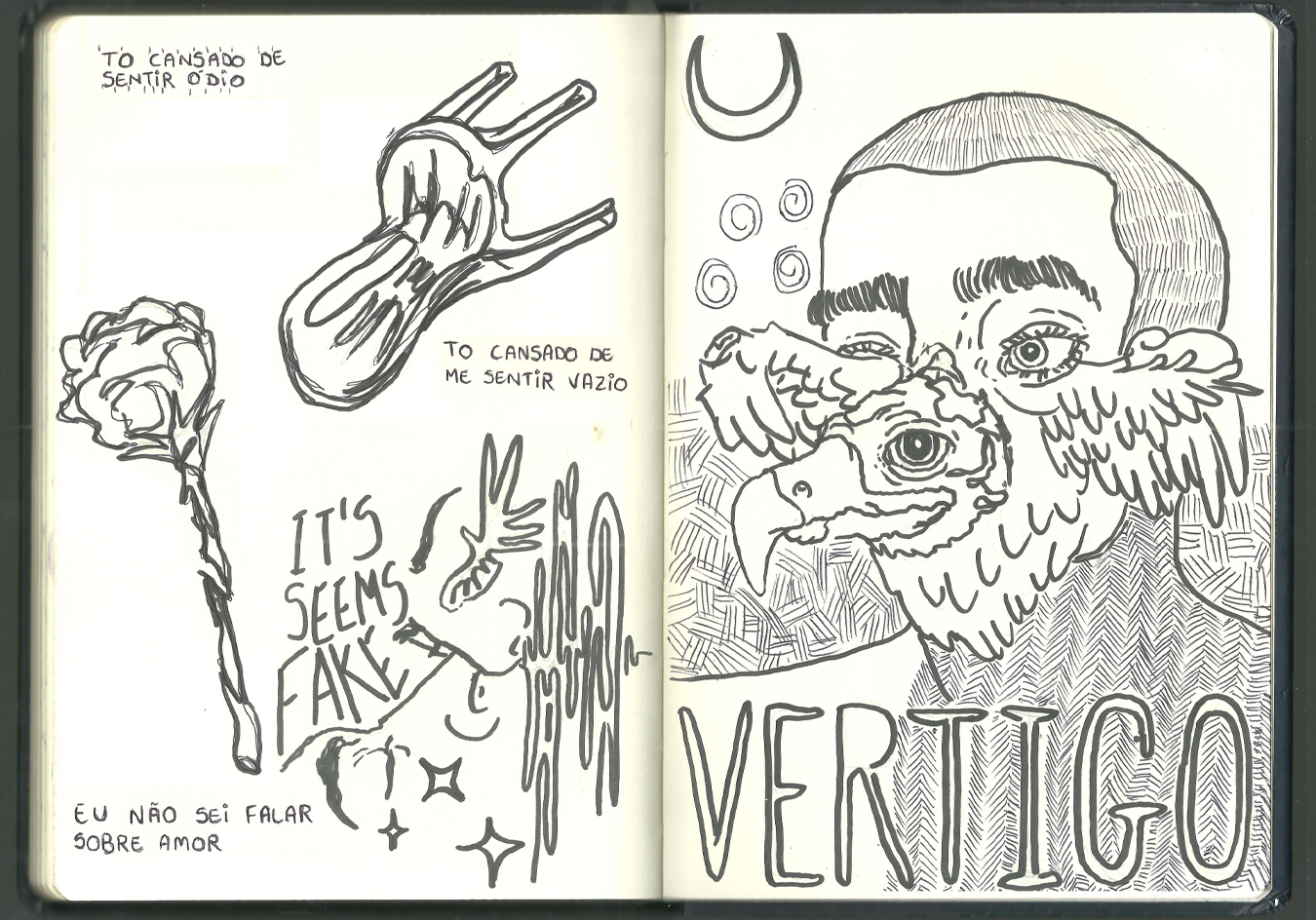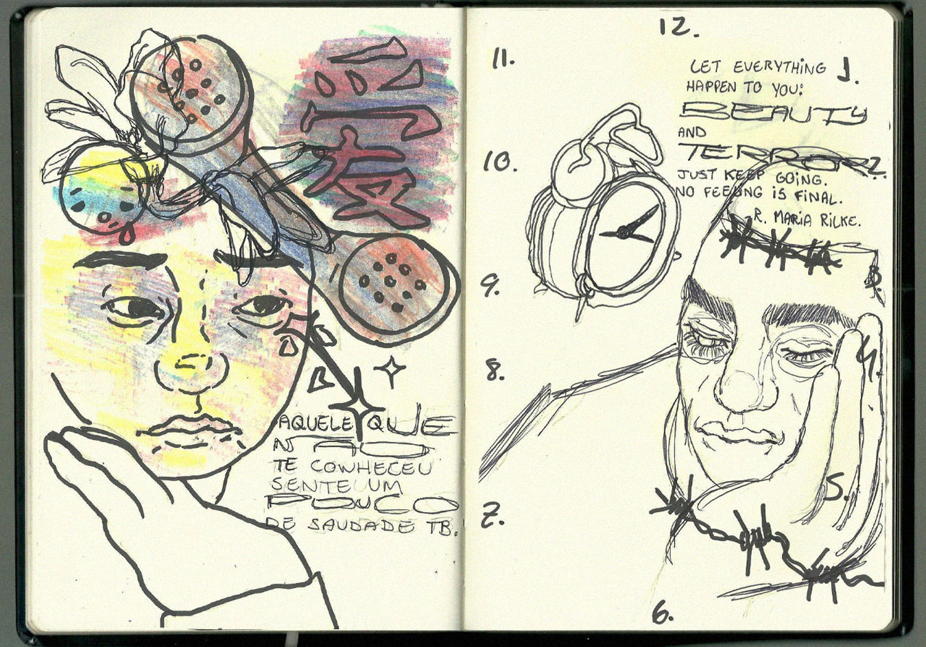 Uma coletânea de digitalizações de um caderno antigo que eu utilizava para anotar ideias abstratas e desenhar retratos conceituais.